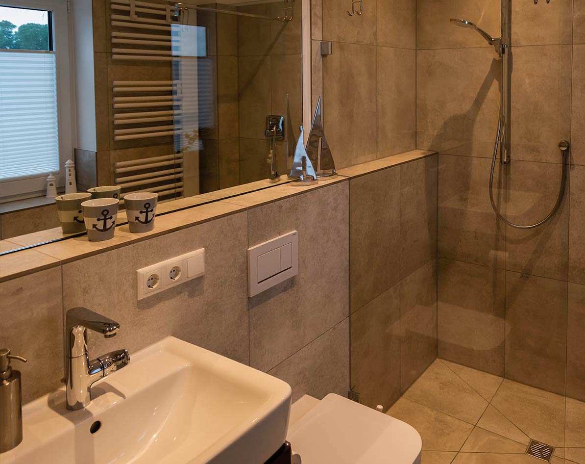 Bodengleiche Duschen sorgen in unserem Feriendomizil für einen entspannten Aufenthalt.
